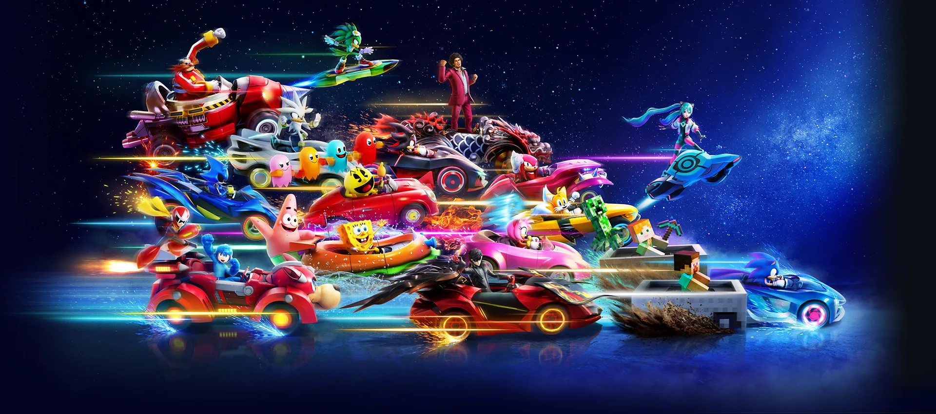 Sonic Racing: Crossworlds یک کراساور بزرگ از دنیای بازیهای ویدئویی است. علاوهبر شخصیتهای محبوب Sonic، این بازی میزبان قهرمانان فرانچایزهای بزرگ جهانی است. شخصیتهایی نظیر جوکر (Persona 5)، استیو (Minecraft)، ایچیبان کاسوگا (Like a Dragon)، مگا من، هادسونه میکو، و اسپانجباب در این رقابت نفسگیر حضور دارند. این تنوع بینظیر، تجربهای جدید و هیجانانگیز برای تمام طرفداران فراهم میآورد.