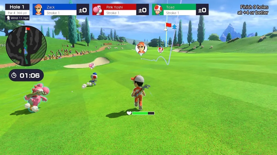 Speed Golf – گلف با سرعت بالا! همه بازیکنان همزمان حرکت میکنند و باید با دویدن و استفاده از حرکات ویژه زودتر توپ را وارد سوراخ کنند.